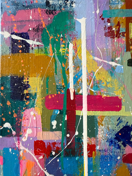 Kaleidoscope Jigsaw consists of ten unique, varied-sized works painted in one continuous flow, the colours and textures weaving through each piece. Each canvas is available individually, or the full collection can be purchased by enquiry.
